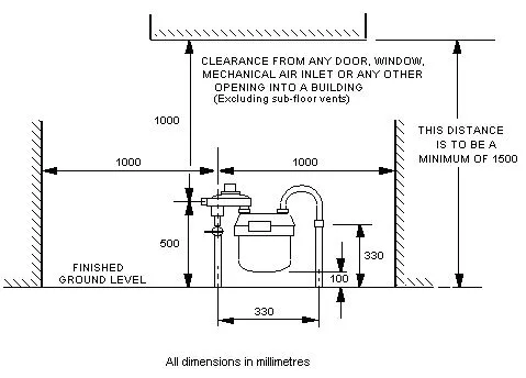 The following diagram explains the gas meter clearance requirements.