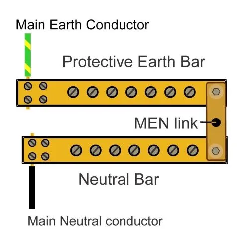 In every electrical installation, there shall be a Main Earth & Neutral connection (also known as the MEN link) at the main switchboard.