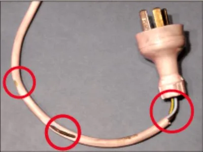 Damages to Plug and or Cord exposes risk to property and people. House fires or electrocution could be a consequence of such a fault. The extensive use of powerboards and double adapters in a property