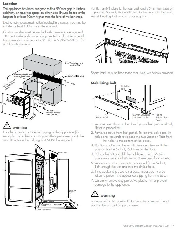 Upright Gas Cooker Securing Requirements